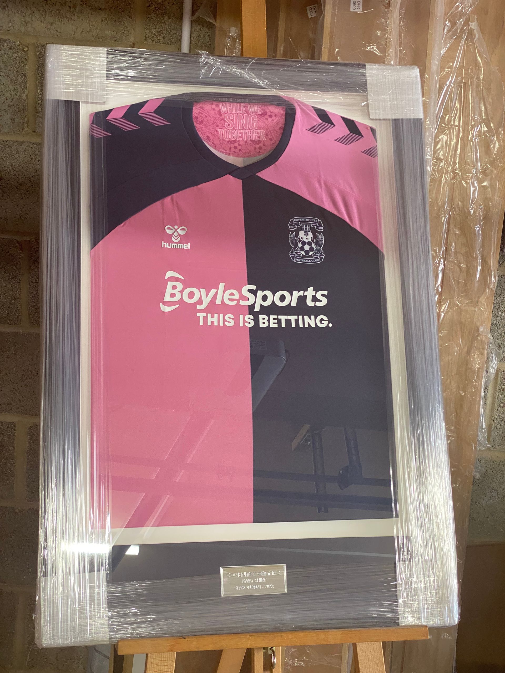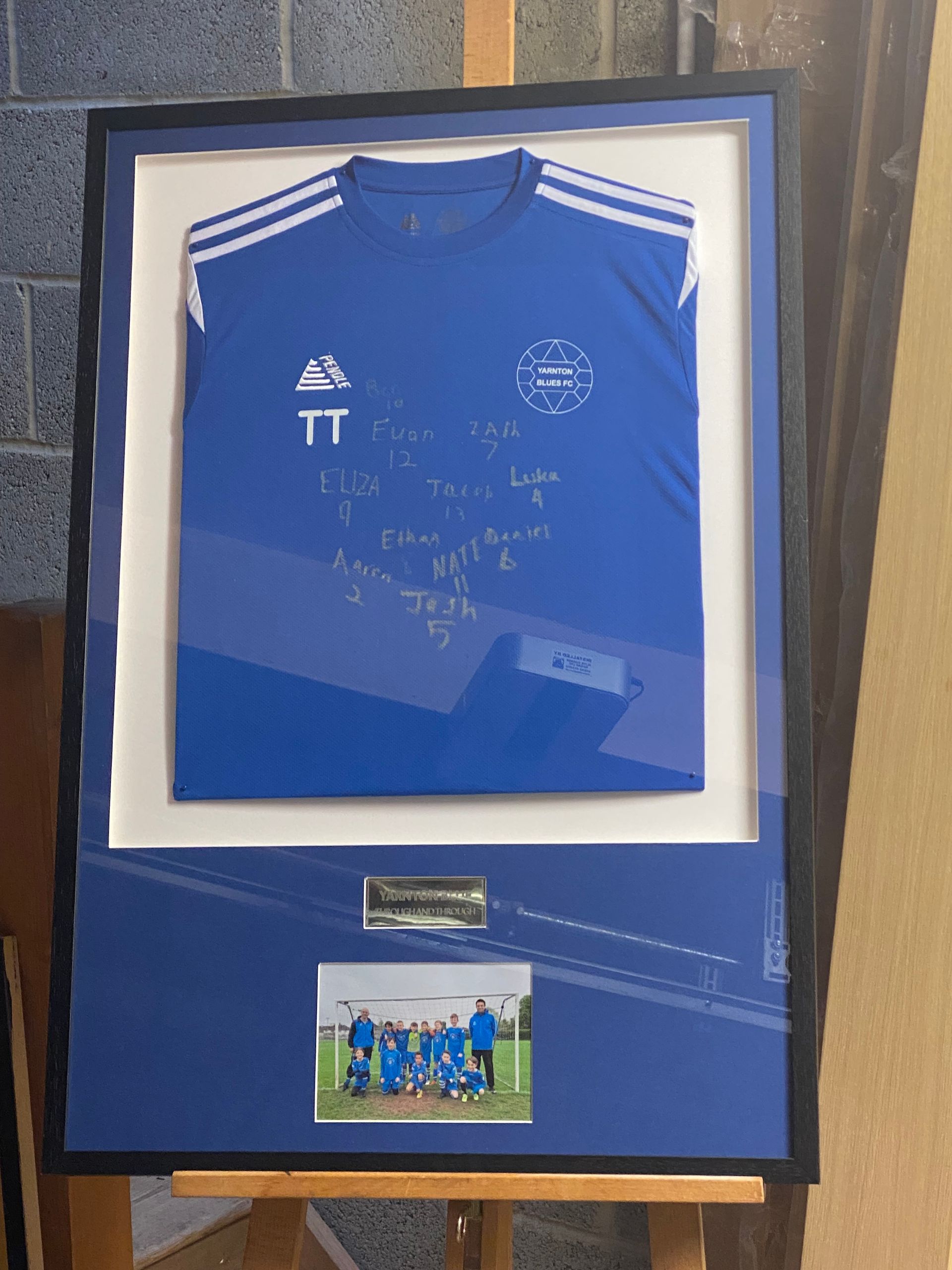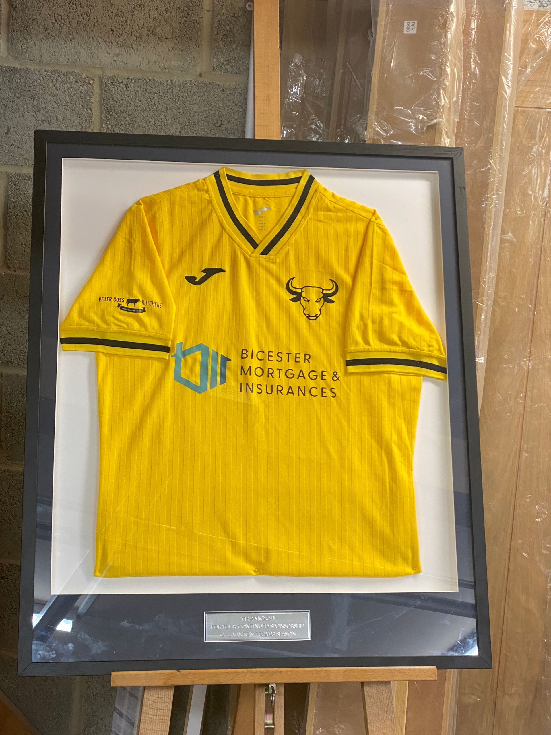 Thanks to Carl for allowing me to frame a Yarnton Blue football shirt as a gift for their management.