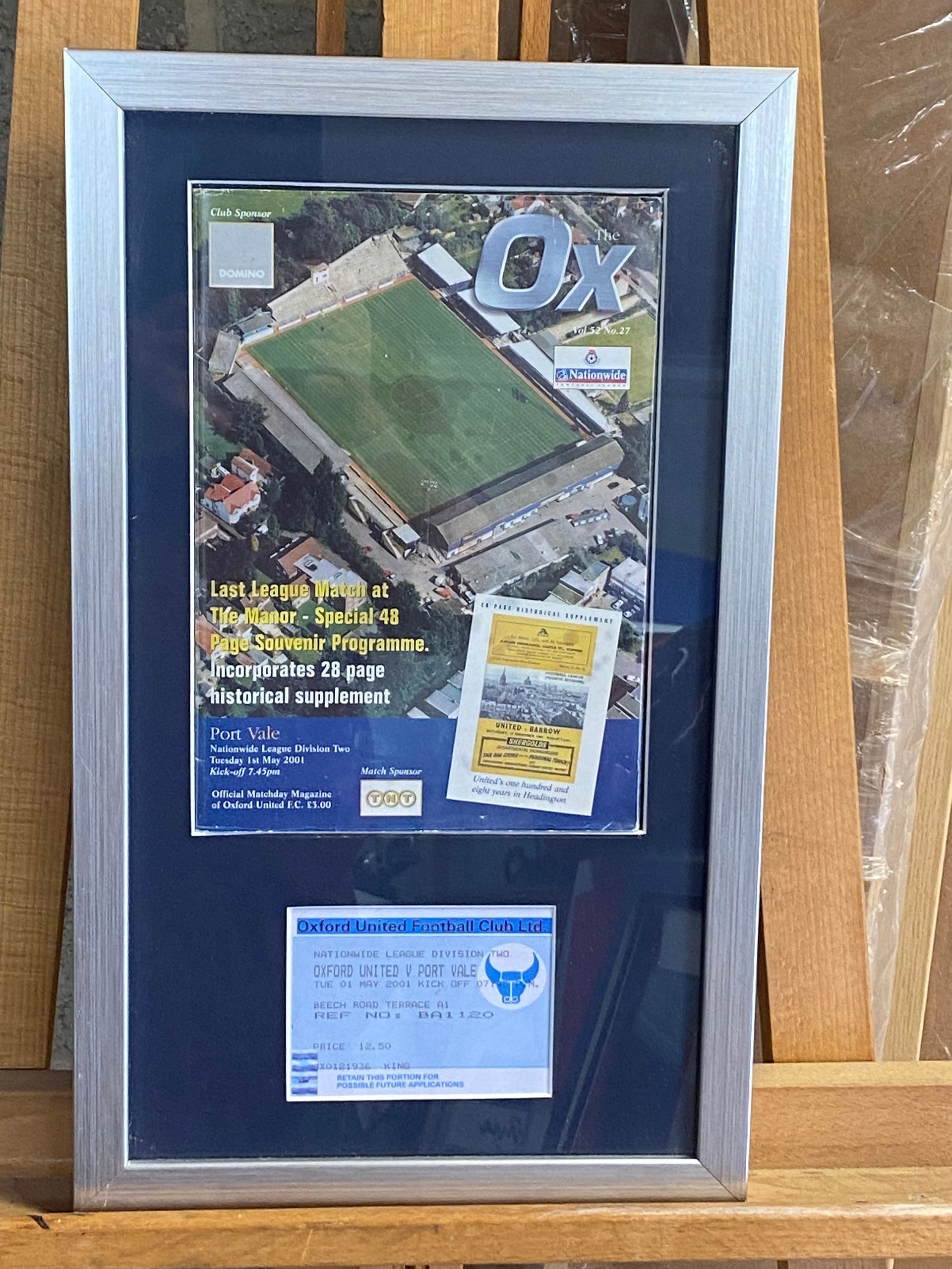 I was asked by Pete Salt to repeat a framing that I recently completed for our group administrator Joe Cockcroft, which included all of his Oxford United programmes relating to their 1986 Milk Cup run and his fathers match ticket. The attached photo shows the final product, complete with engraved plaques supplied by Witney Trophy Centre, which Pete is well pleased with