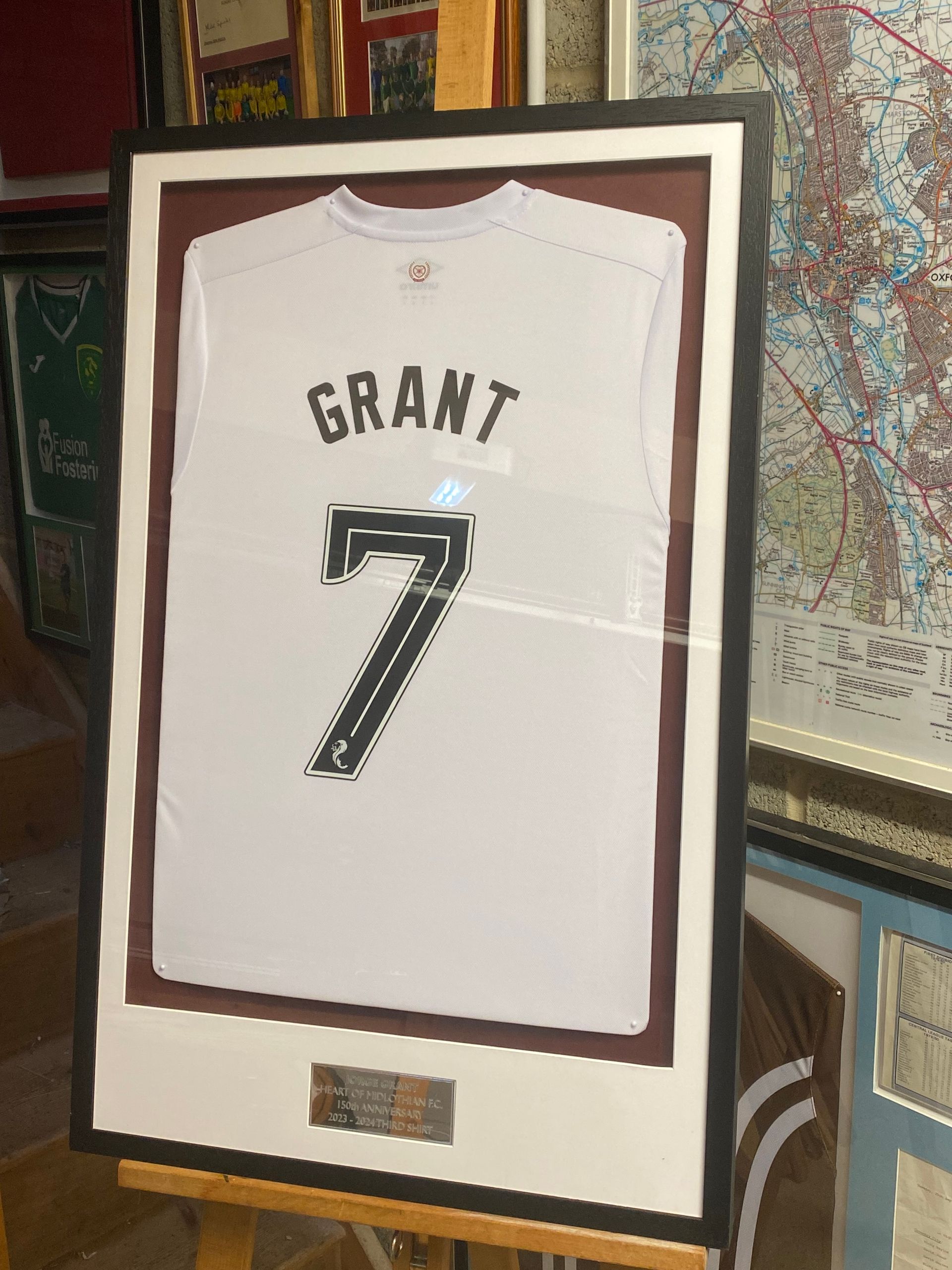Thank you to Kevin James for giving me the opportunity to frame his signed Hibernian shirt and his signed Barcelona shirt.