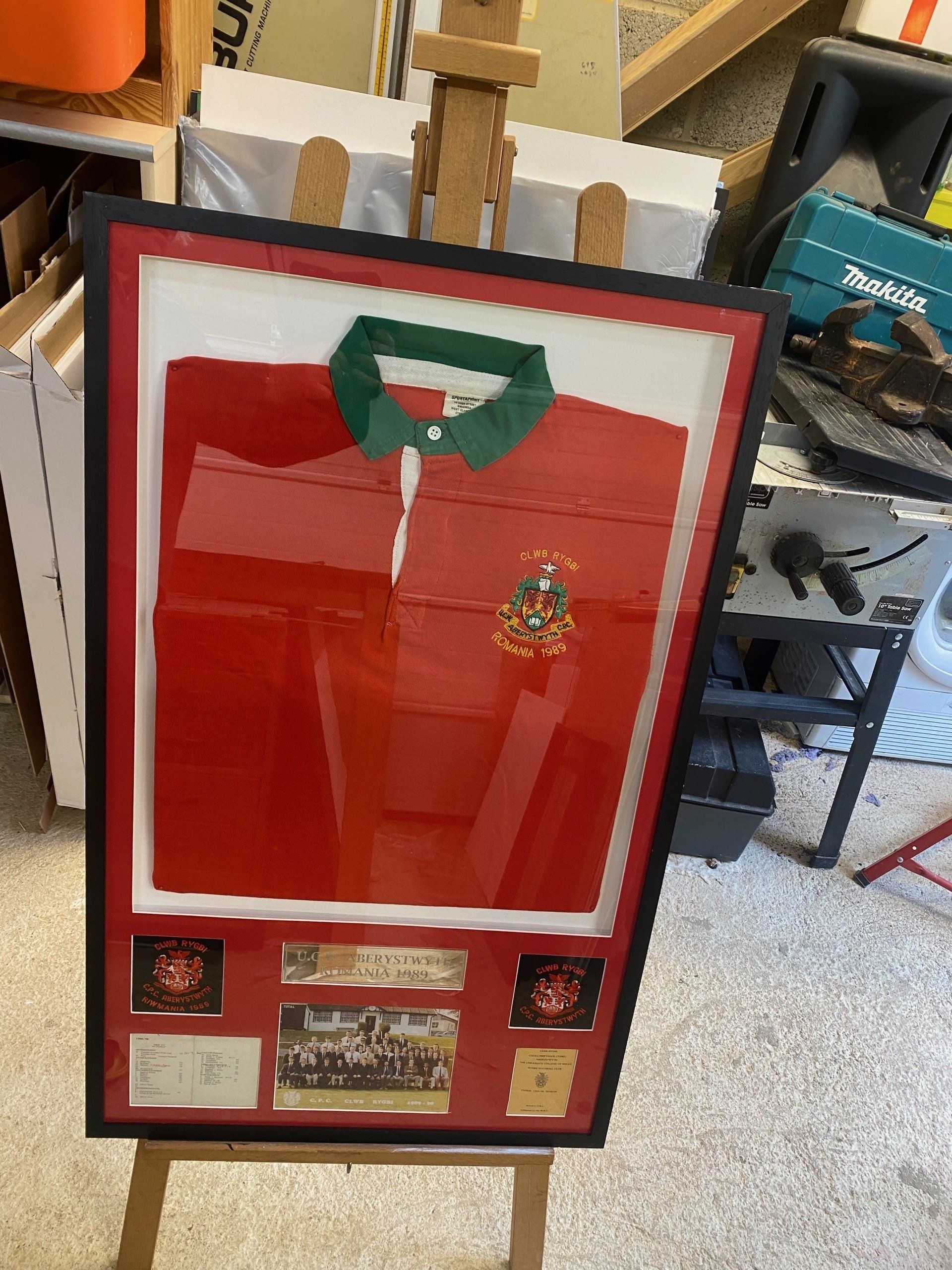 Thank you to Oxford Harlequins RFC for trusting me to frame two old shirts for their recent Open Evening. Here is a picture of Neil Hopper, Chairman of Oxford Harlequins RFC, alongside the completed shirts of the two clubs that formed Oxford Harlequins back in 1996, Oxford Old Boys RFC and Oxford Marathon RFC.